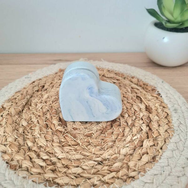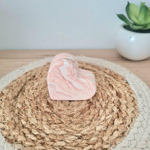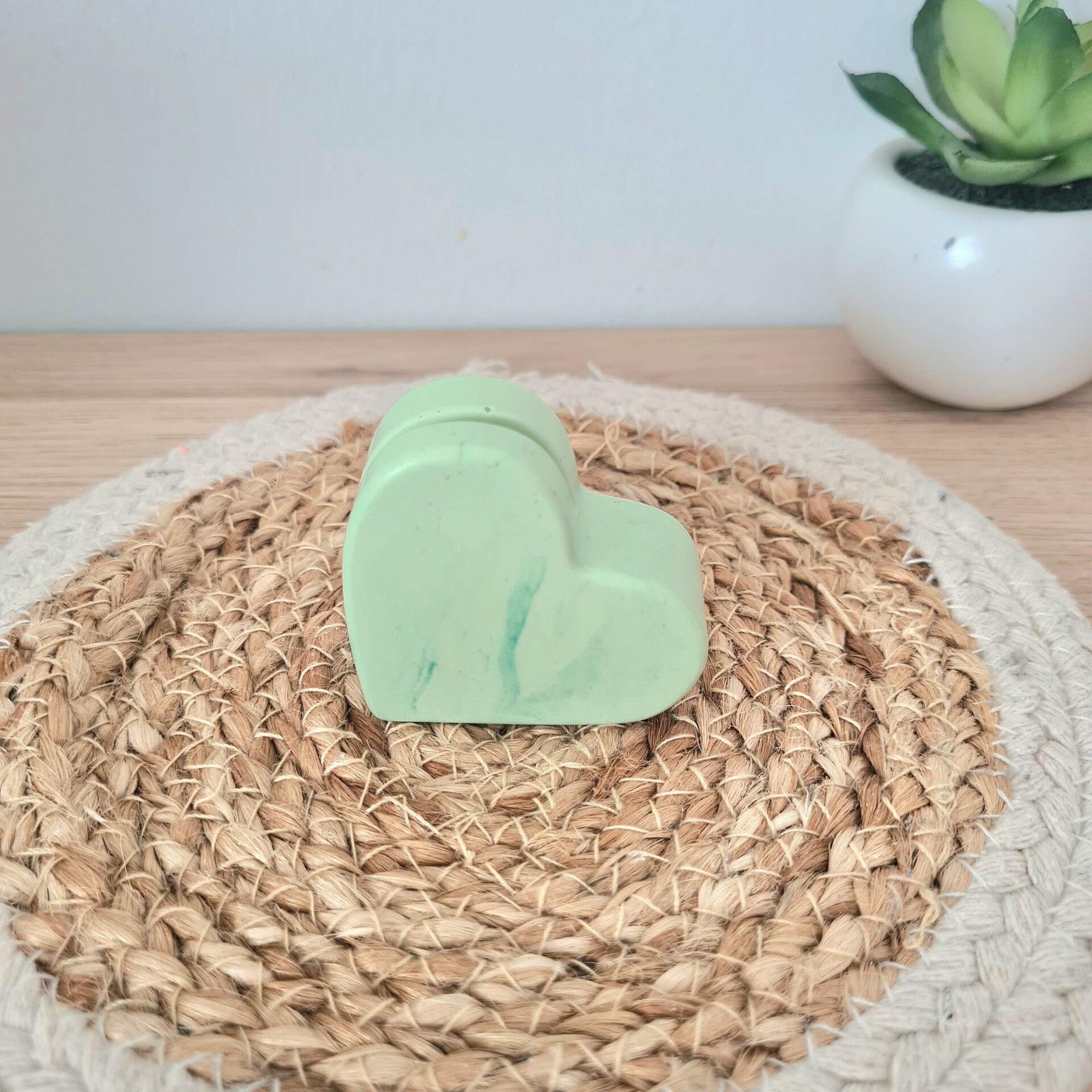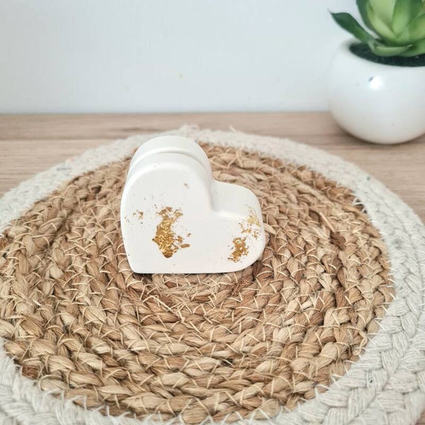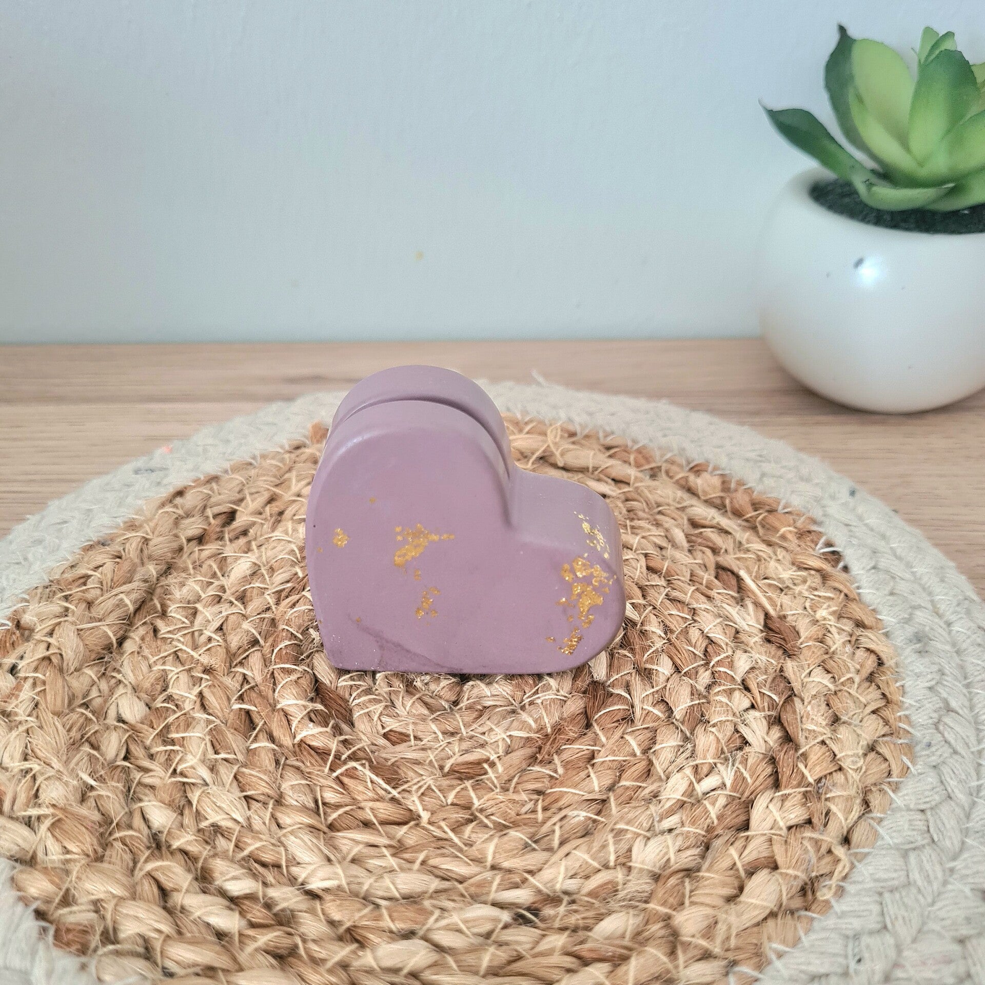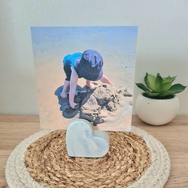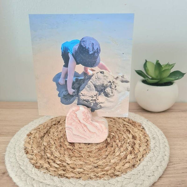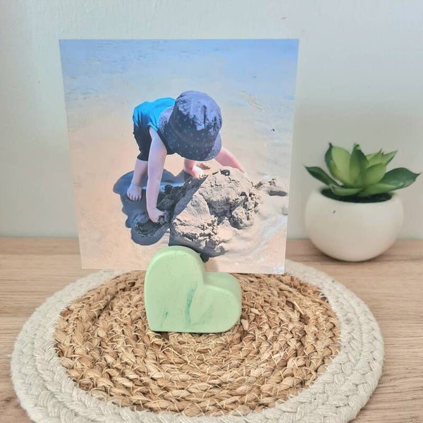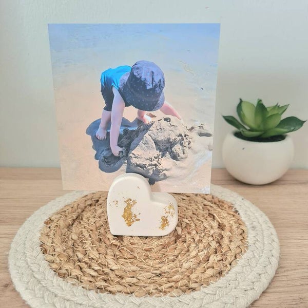 Porte photo en jesmonite, forme cœur. Idéal pour y mettre votre plus belle photo.